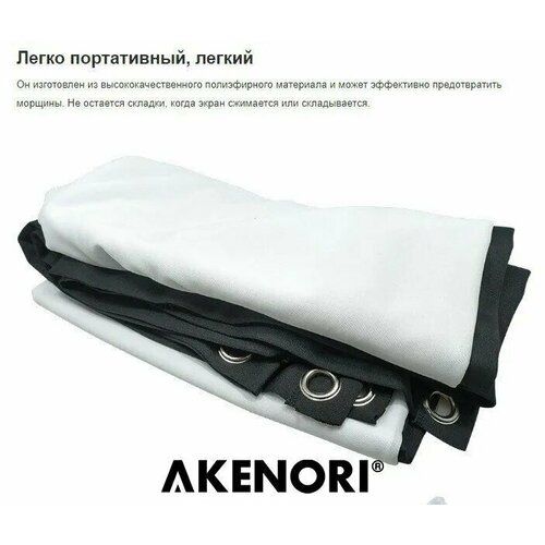 Одним из главных преимуществ экрана Akenori является, что он изготовлен из высококачественного полиэфирного материала, который предотвращает появление морщин на экране. Экран легко складывается без образования складок, что обеспечивает комфортное использование и быструю установку всего за 2 минуты.
