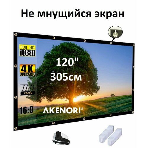 Найти - Экран для проектора 120 дюймов 304см не мнущийся, белый с кольцами и крюками для темных стен (формат 4:3 и 16:9)