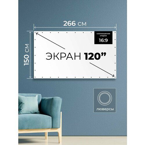 Найти - Экран для проектора 120 16:9 (266х150 см). Полотно с люверсами в тубе