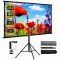 Штатив с прочной базой обеспечивает стабильность. Экран легко складывается и помещается в специальный **сумку для хранения**, которая поместится в багажник любого автомобиля, включая седаны. Идеально для поездок, кемпинга и фильмов на открытом воздухе.