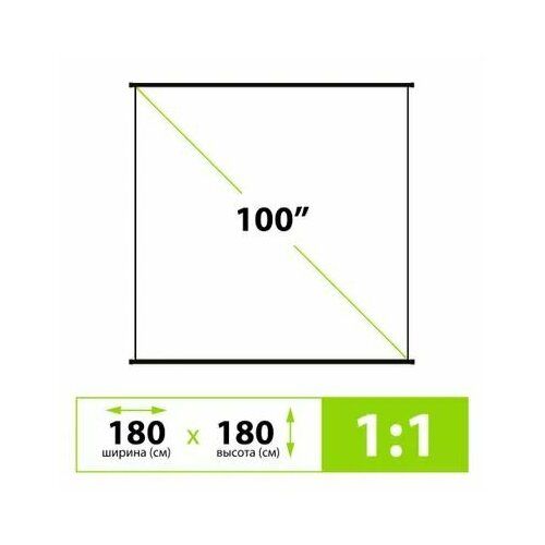 Особенностью данного экрана является его размер - 180x180 см. Это позволяет комфортно разместить экран в любом помещении, будь то домашний кинотеатр или конференц-зал.
