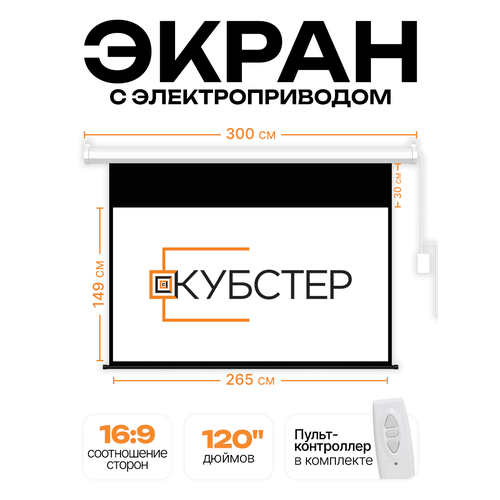 Найти - Экран с электроприводом Кубстер 265х149 см (16:9), 120 дюймов