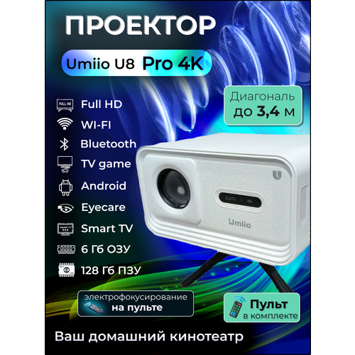 Домашний мини проектор Umiio U8 Pro 4K- идеальное решение для тех, кто хочет создать уютный кинотеатр прямо у себя дома.