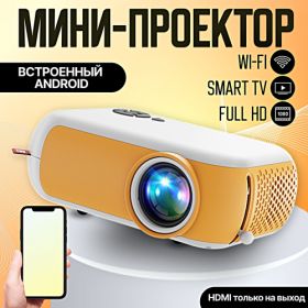 Найти - Проектор A10 Full HD Android TV, Портативный проектор 5G, HDMI, Проектор мультимедийный Wi-Fi 1080p для дома, дачи, офиса, Желтый