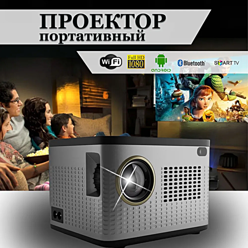 Найти - Проектор Full HD Android TV, Портативный проектор 5G, HDMI, Проектор мультимедийный Wi-Fi 1080p для дома, дачи, офиса, Cерый