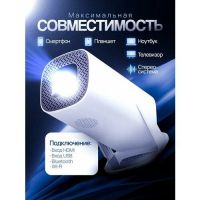 Проектор имеет компактные размеры (ширина 115 мм, глубина 115 мм и высота 150 мм) и легкий вес (0,7 кг), что делает его удобным для транспортировки и установки. В комплект поставки входят трипод, HDMI-кабель, кабель питания, кабель-переходник 3.5mm Jack- 3 RCA, 2 батарейки AAA и пульт дистанционного управления.