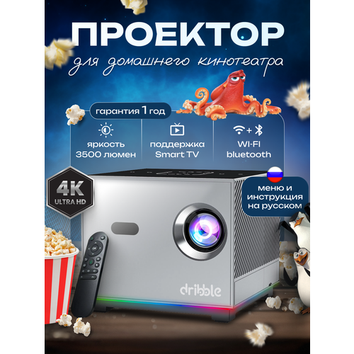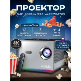 Найти - Проектор Dribble T6 Max для фильмов и игр домашний 4К FULL HD, Wi-Fi и Bluetooth, с подключением к телефону и ПК