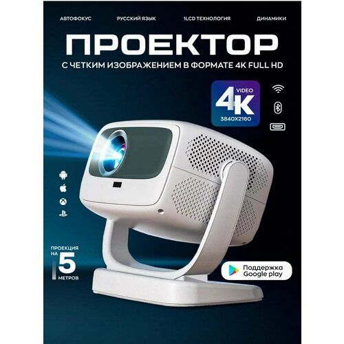 Этот проектор оснащен полным HD 4K разрешением, обеспечивая яркое и четкое изображение. С поддержкой Bluetooth 5.0 и Wi-Fi, он легко подключается к вашим устройствам, предоставляя беспроводной доступ к вашим любимым фильмам и сериалам. Встроенная система Android 9.0 и Smart TV позволяют легко установить и запускать приложения из Google Play, делая навигацию простой и удобной. Объем встроенной памяти в 32 ГБ позволяет хранить большое количество контента. Поддерживаемые форматы AVI, MP4, MKV и совместимость с Android, Mac OS, iOS делают его универсальным выбором для любого пользователя. Технология LED обеспечивает долговечность и энергоэффективность. Подключение через HDMI, USB, AUX открывает широкие возможности для подключения различных источников видео и аудио. Напряжение питания 220 В гарантирует стабильную работу в любой стране. Это идеальное решение для тех, кто ценит качество изображения и удобство использования. Дополнительные разъемы HDMI, USB, AUX и беспроводные интерфейсы в виде Bluetooth и Wi-Fi позволяют с легкостью подключать полезный гаджет к компьютеру и телевизору, планшету и ноутбуку с интернетом, к смартфону, наушникам, игровой консоли. Компактный настольный девайс удобен для воспроизведения на стенке в большой гостиной, в детской комнате. Удобная переносная техника радует отличным качеством воспроизведения при любом освещении в помещении или на улице: не только ночном, но и дневном.