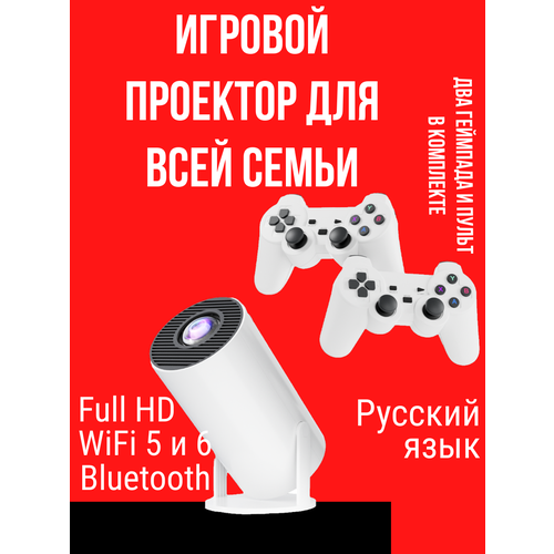Игровой проектор с двумя джойстиками в комплекте (подключение к проектору через USB-коннектор - в комплекте). Порт HDMI и USB. Гарантия и техподдержка. Система Android. Можно повернуть на 360 градусов. На проекторе можно играть в самые любимые игры, смотреть изображения и фильмы прямо из интернета или с телефона, планшета или компьютера и преобразовывать их в 150-дюймовый киноэкран, при этом яркость и качество полученных изображений Ultra HD. Можно подключить ПК или ноутбук с помощью HDMI . Комплект с проектором весит 1,5 кг (пульт, провода для телевизора, джойстики, карта памяти). Домашний проектор - идеален для домашнего кинотеатра, но он подойдет также для проведения презентаций, просмотра мультфильмов с детьми. Максимальная диагональ до 150 дюймов, максимальное разрешение составляет 4К ( Full HD ). Предусмотрена автоматическая фокусировка и коррекция трапецеидальных искажений. Яркость лучей в 150 ANSI люмен обеспечит четкую картинку как в абсолютной темноте, так и при небольшом дополнительном освещении. Благодаря Wi-FI и Bluetooth проектор может воспроизводить материалы с телефона. За звук отвечают два встроенных динамика. Кинопроектор рекомендуется располагать на расстоянии 1.5-4.0 м от экрана.