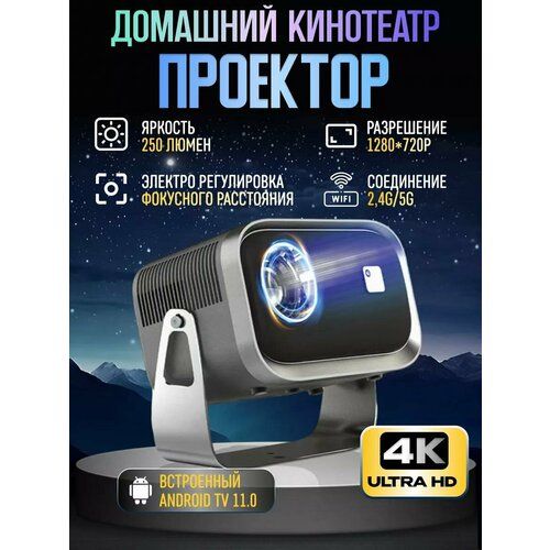Найти - Проектор X9 HD 720p с Android TV, Портативный Smart-проектор с Wi-Fi 5G, HDMI, Серый