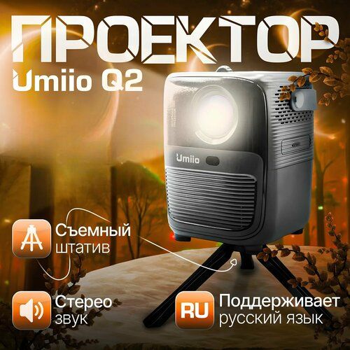 Найти - Проектор для фильмов UMIIO Q2 черный / Android, вход HDMI, Wi-Fi, Bluetooth, USB, поворотный штатив