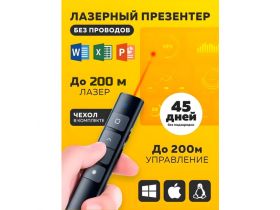 Презентер кликер лазерный, указка для презентаций, дальность до 60м, черный 4428774709