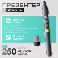 Кнопки презентера: лазерный указатель, режим полного экрана, выключение экрана/выход, предыдущая страница, следующая страница, включение/выключение устройства, переключение систем