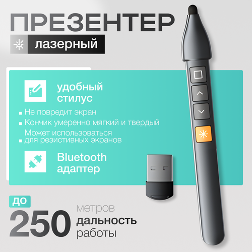 Беспроводной USB презентер с лазерной указкой станет незаменимым помощником для проведения презентаций и обучения.