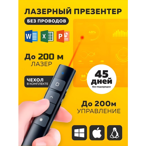 Презентер лазерный беспроводной Woop используется для переключения слайдов презентации без использования мыши. Презентер беспроводной позволяет спикеру самостоятельно выбирать темп повествования, переключать на нужные слайды, не отходя от доски и не пользуясь помощью коллег. Указка лазерная, пульт работает в радиусе до 100 метров благодаря технологии, совместимой с RF2,4 ГГц. Кликер для презентаций имеет небольшие размеры и выполнен в виде пульта с клавишами для переключения между слайдами. Кликер совместим с большинством проекторов и быстро синхронизируется с ними. Поставляется в текстильном защитном чехле.