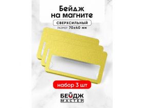 Бейдж на магните БейджМастер горизонтальный с окном для школьника, размер 70x40 мм, цвет золото искристое, 3 шт 102503332272