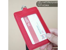 Бейдж для пропуска на ленте из натуральной кожи с чехлом для карт, красный 103068768244