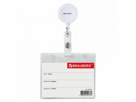 Бейдж горизонтальный (60х90 мм), с держателем-рулеткой 70 см, белый, BRAUBERG, 238241 102504659906
