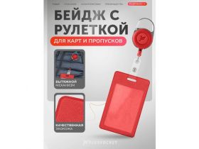 Держатель для пропуска/бейджа с карабином и ретрактором Flexpocket красный 102080946364