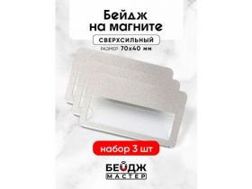 Бейдж на магните БейджМастер горизонтальный с окном для школьника , размер 70x40 мм, цвет серебро искристое, 3 шт 102503332271