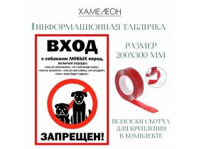 Информационная табличка Вход с собаками любых пород запрещен 200х300 мм 103825558845