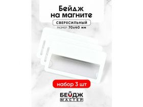 Бейдж на магните БейджМастер горизонтальный с окном для школьника, размер 70x40 мм, цвет белый белоснежный, 3 шт 102496346362