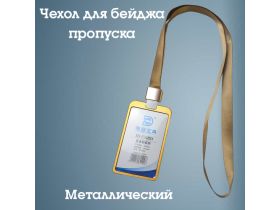 Чехол для пропуска, бейдж на ленте, бейдж для офиса вертикальный (золотой) 102638270807