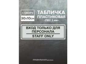 Табличка на служебное помещение "Вход только для персонала - staff only" 10х30 см, серая + двусторонний скотч. Правильная Реклама 102223047585