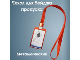 Чехол для пропуска, бейдж на ленте, бейдж для офиса горизонтальный (серебряный) 102638272470