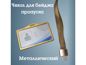 Чехол для пропуска, бейдж на ленте, бейдж для офиса горизонтальный (золотой) 102638272469