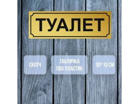 Табличка на дверь, Туалет, из ПВХ пластика 3 мм. 10х30 см. Цвет матовое золото. 103721236072