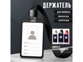 Держатель для бейджа/пропуска/карточки с длинной лентой (чёрный) 103477356501