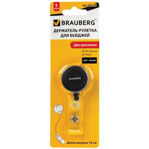 Найти - Ретрактор BRAUBERG держатель-рулетка для бейджей 1 шт.,черный