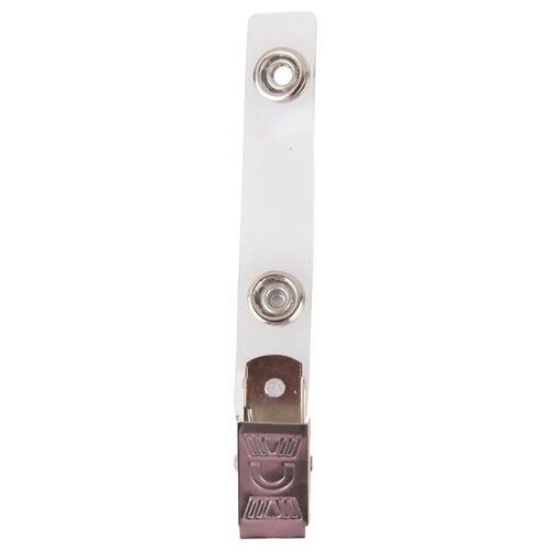 Металлическая клипса с прозрачным держателем для крепления бейджей. Клипса крепится на карман или одежду. Поставляется в упаковке по 10 штук.