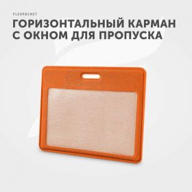 Найти - Горизонтальный чехол для пропуска, карт доступа, карман для проездного, школьный, для офиса Flexpocket, цвет оранжевый