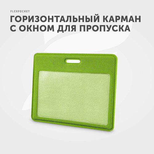 Найти - Горизонтальный чехол для пропуска, карт доступа, карман для проездного, школьный, для офиса Flexpocket, цвет зеленый