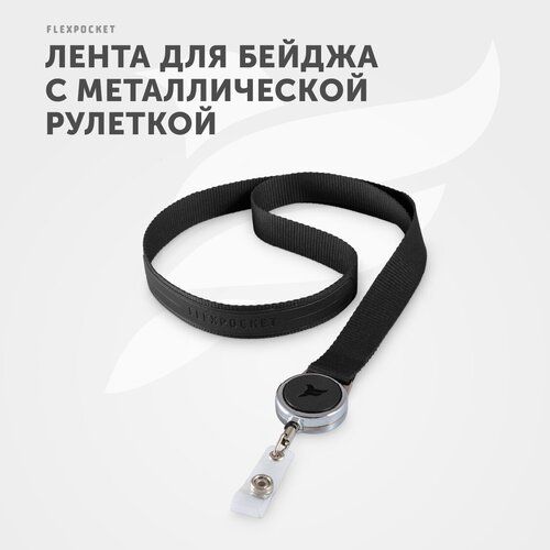 Найти - Лента для бейджа, держатель для бейджа с металлическим ретрактором рулеткой Flexpocket, цвет черный