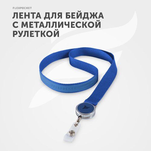 Найти - Лента для бейджа, держатель для бейджа с металлическим ретрактором рулеткой Flexpocket, цвет синий