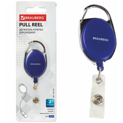 Найти - Держатель-рулетка для бейджей, комплект 10 шт 70 см, петелька, карабин, синий, в блистере, BRAUBERG, 235726