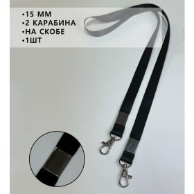 Найти - Ланъярд (шнурок) для бейджа с 2 карабинами 15 мм, 1 шт, черный