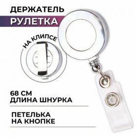 Найти - Держатель для бейджа Комус с рулеткой цвет металик (без бейджа) 1шт