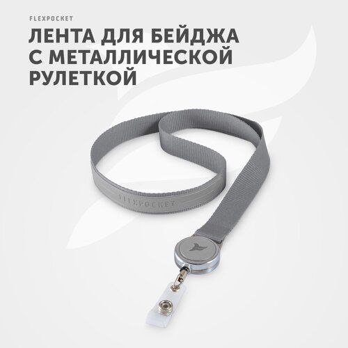 Найти - Лента для бейджа, держатель для бейджа с металлическим ретрактором рулеткой Flexpocket, цвет серый