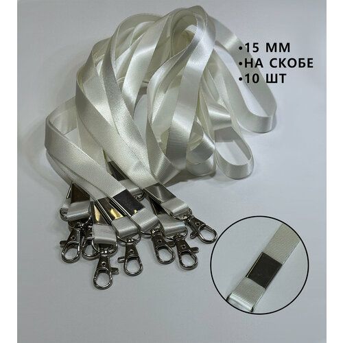 Найти - Ланъярд (шнурок) для бейджа с карабином 15 мм, 10 шт, белый