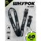 Шнурок состоит из двух частей: длинная часть вешается на шею, короткая часть пристегивается к ключам. Крепление шнурка для ключей происходит с помощью карабина из нержавеющей стали.