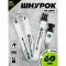 Шнурок состоит из двух частей: длинная часть вешается на шею, короткая часть пристегивается к ключам. Крепление шнурка для ключей происходит с помощью карабина из нержавеющей стали.
