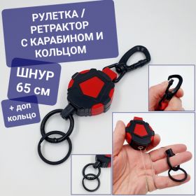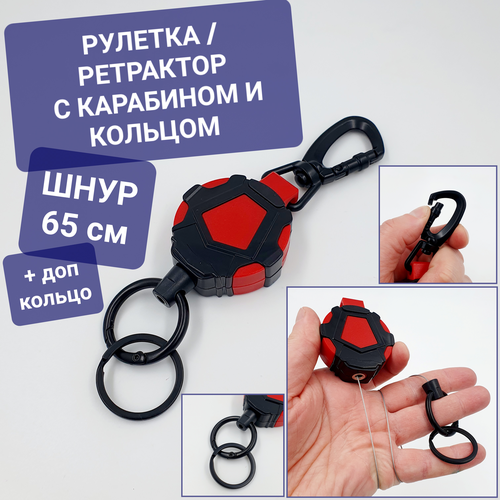 Найти - Брелок держатель рулетка усиленная / ретрактор для бейджа, ключей, пропуска / бейджика, 65 см, 2 кольца - черный/красный цвет