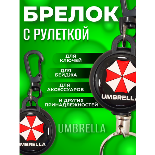 Найти - Брелок рулетка с карабином 60 см для ключей, держатель для бейджа, ретрактор Umbrella corporation resident evil Амбрелла обитель зла