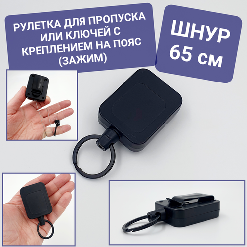 Найти - Брелок держатель рулетка усиленная / ретрактор для бейджа, ключей, пропуска / бейджика, 65 см, кольцо / черного цвета