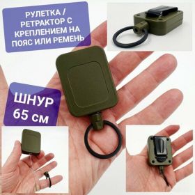 Найти - Брелок держатель рулетка усиленная / ретрактор для бейджа, ключей, пропуска / бейджика, 65 см, кольцо / цвета хаки