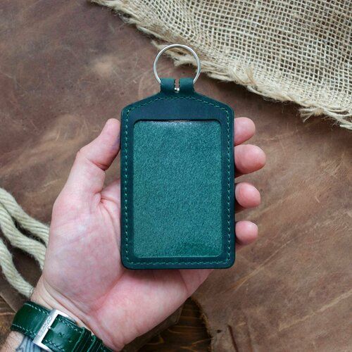 Найти - Чехол для бейджа кожаный. Ручной работы. Чехол для пропуска с окошком
